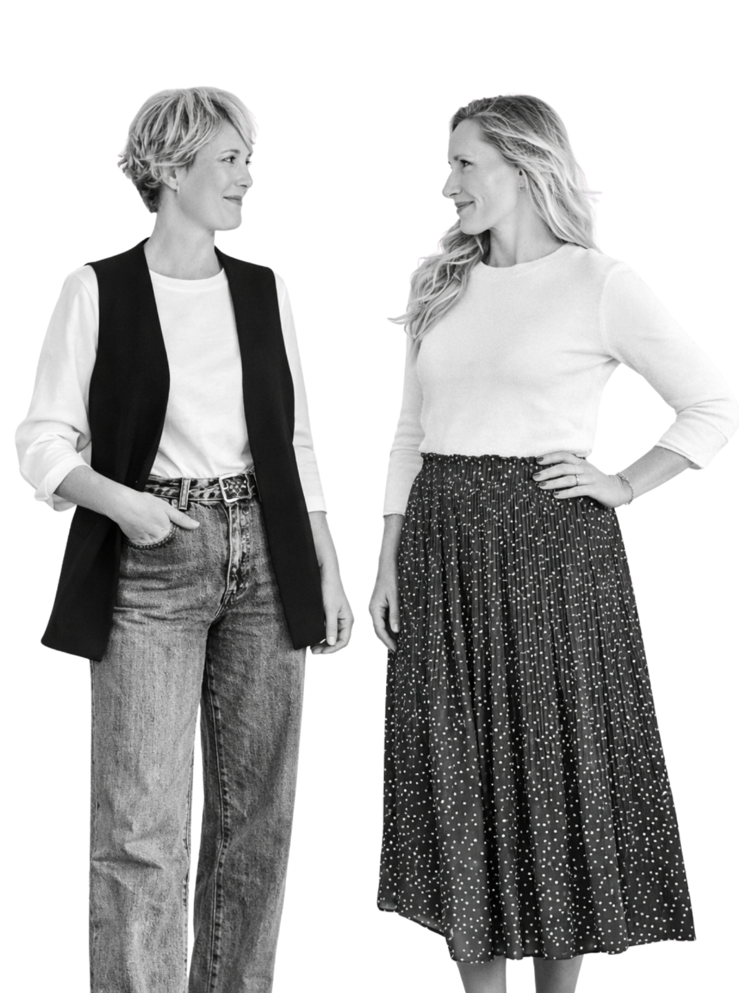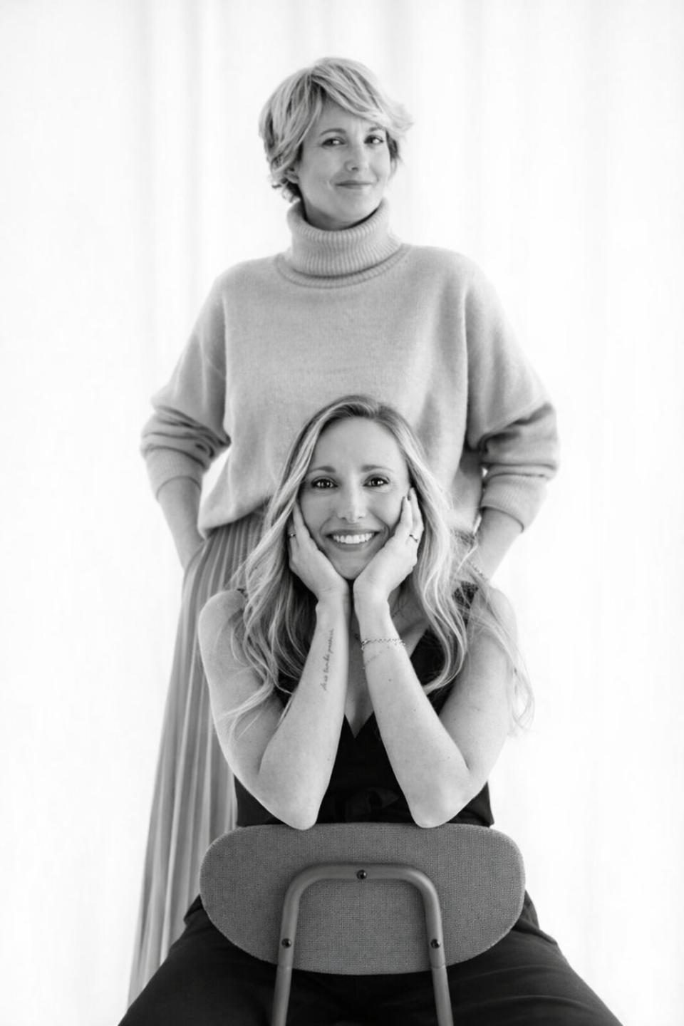 Somos formadoras, consultoras y podcasteras y llevamos 16 años acompañando mujeres que, como tú, están hartas de ponerse trajes que no les encajan y decididas a quitarse capas y permitirse ser quienes, simplemente, son.